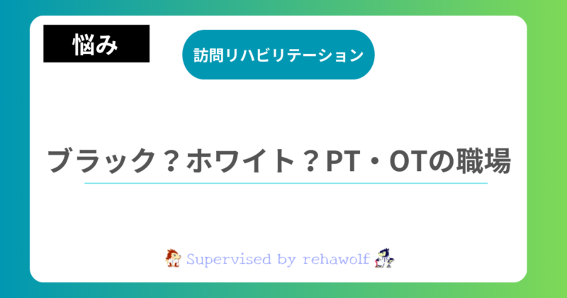 理学療法士や作業療法士として働く上で、「この職場はブラックなのか、それともホワイトなのか」という悩みを抱える人は少なくありません。 医療・介護業界は人手不足や制度改定の影響を受けやすく、労働環境は職場ごとに大きく異なります。 本記事では理... -