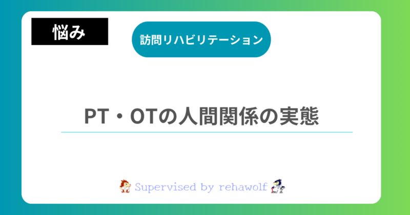 理学療法士(PT)や作業療法士(OT)として働く上で、仕事内容だけでなく「人間関係」が大きな悩みになるケースは少なくありません。 医療・介護業界は多職種連携が必須であり、同僚や上司、医師、看護師、介護職などとの関わり方にストレスを感じる人も多... -